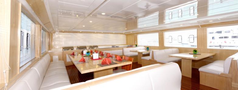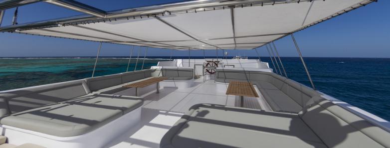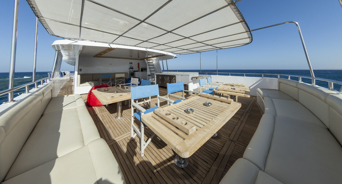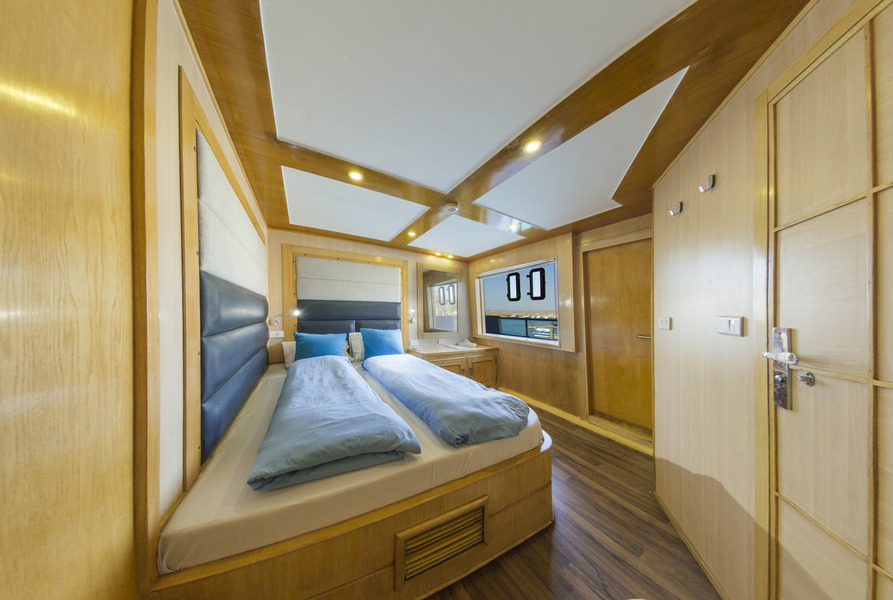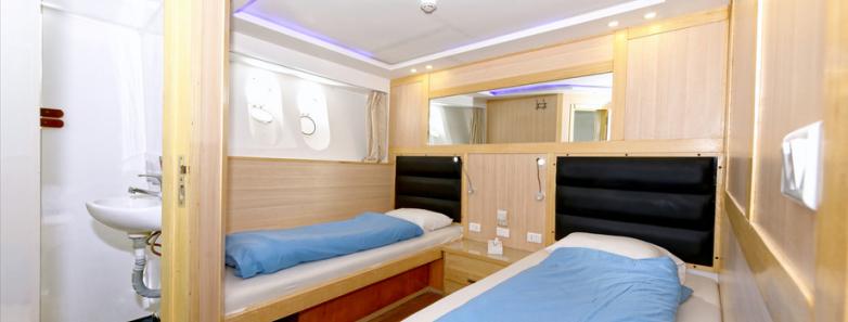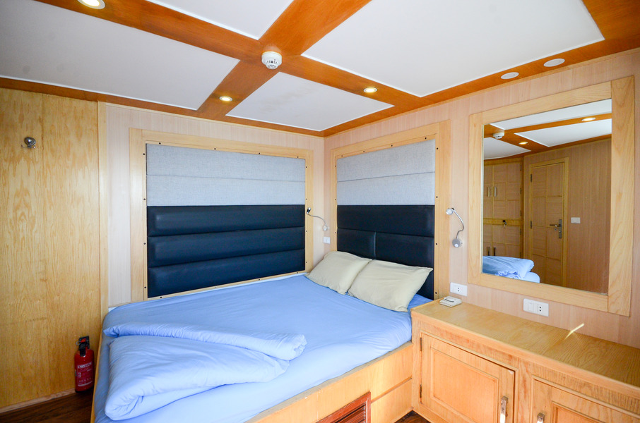 The Blue Seas liveaboard offers guests 12 deluxe double or twin bed cabins, all with en suite bathrooms and fully air-conditioned.