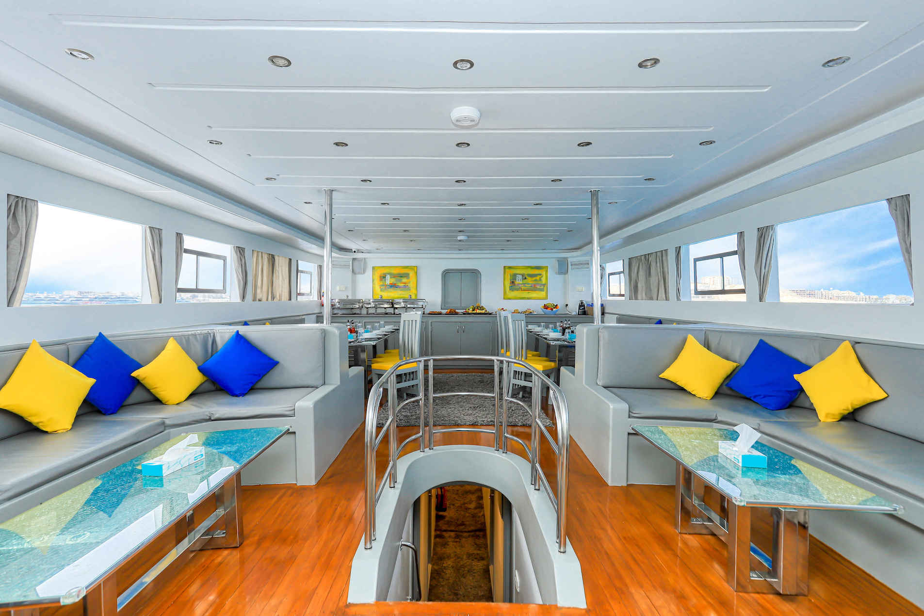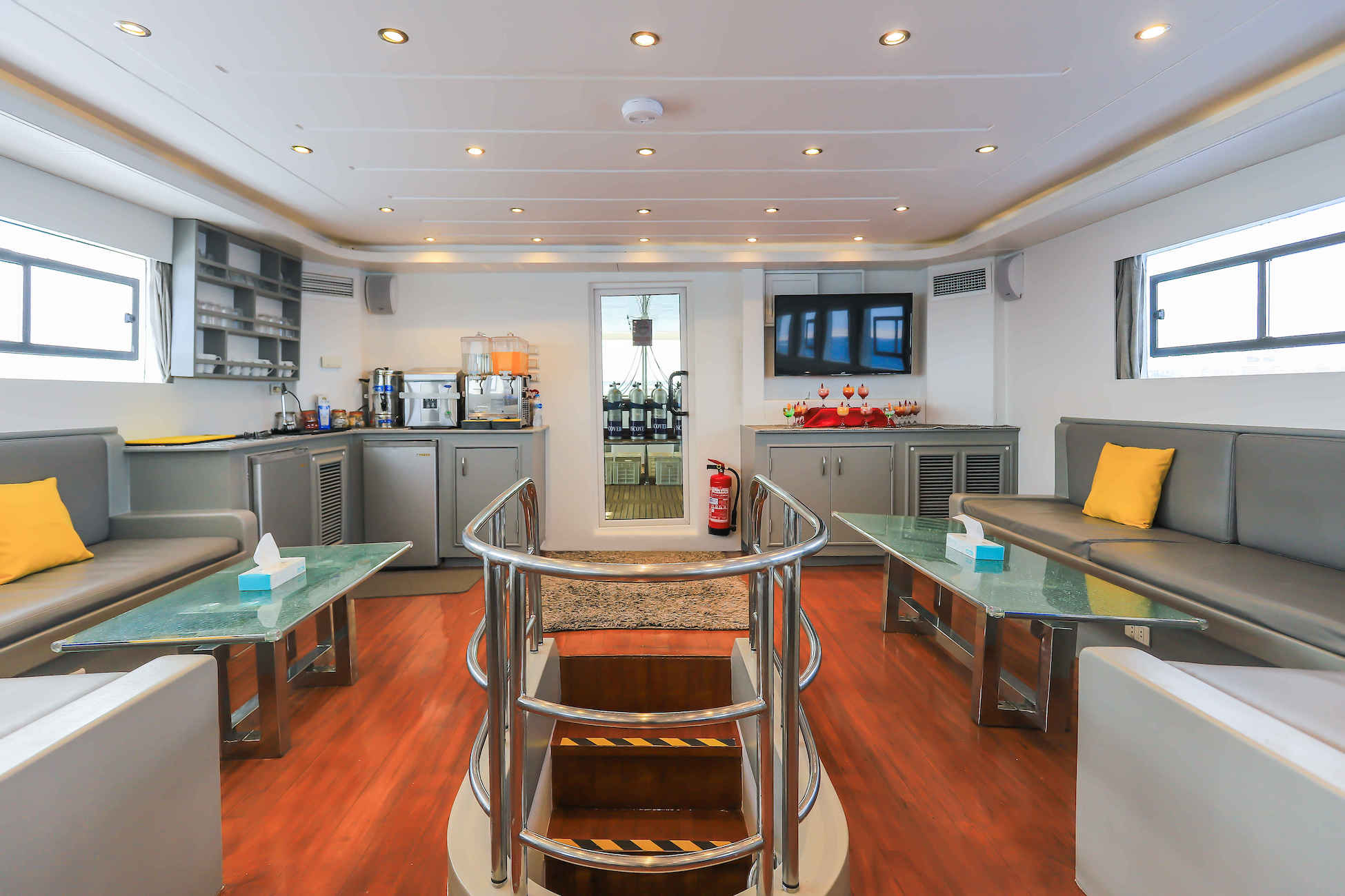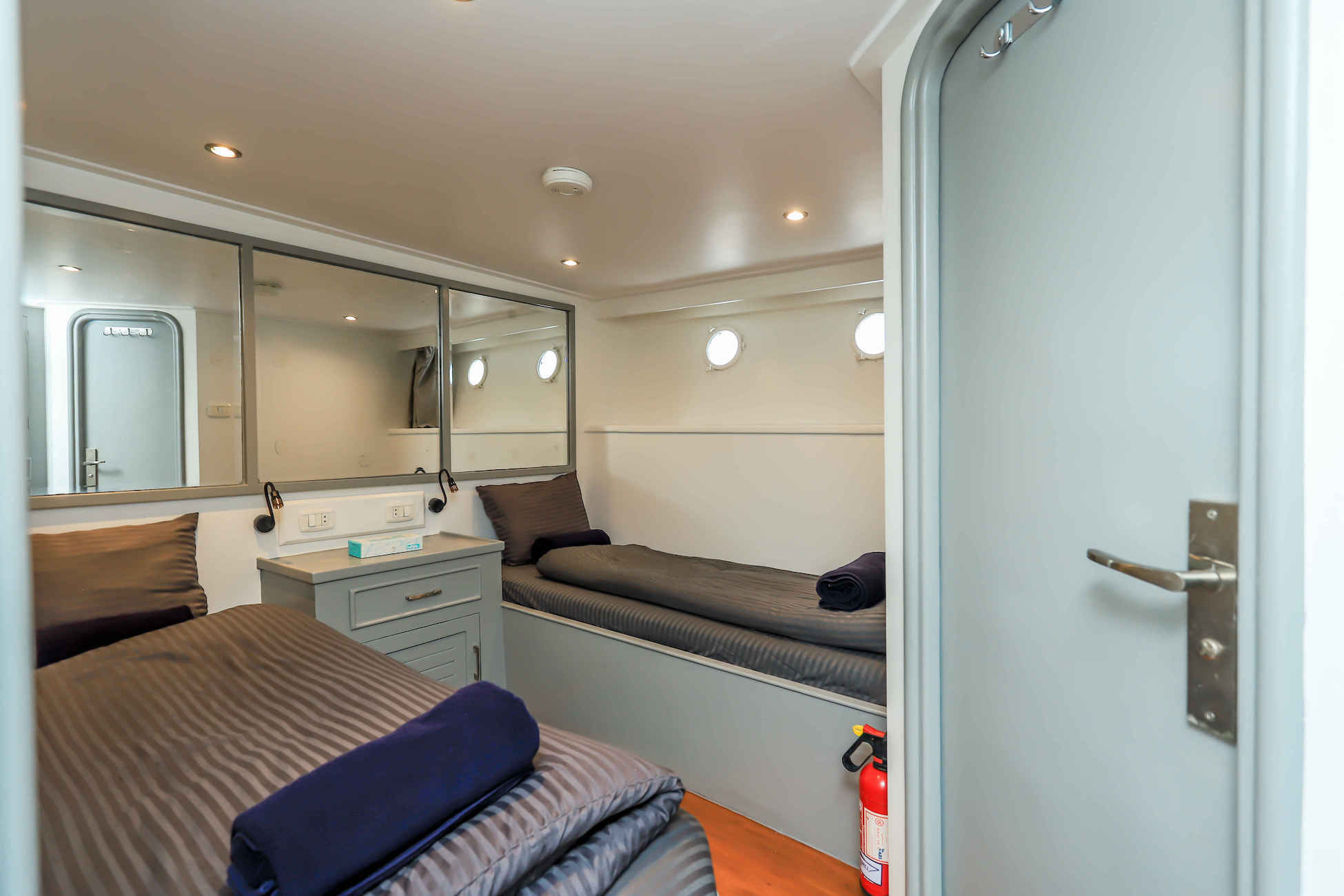 The MY Discovery I can comfortably accommodate up to 20 guests in 10 double cabins. Six of the cabins are located on the lower deck and are configured with side-by-side beds. The remaining 4 cabins are located on the higher deck; 2 of which contain side-by-side beds with the other containing 2 double beds. All cabins are fully airconditioned and come complete with an en-suite bathroom.