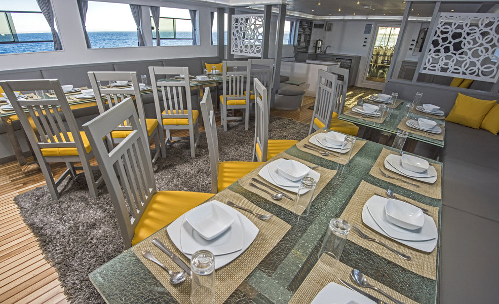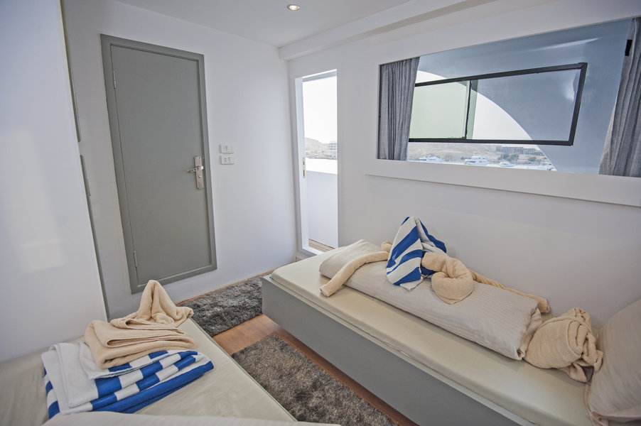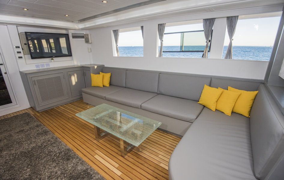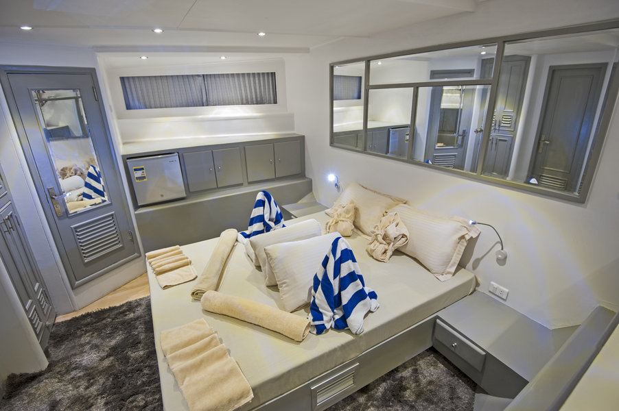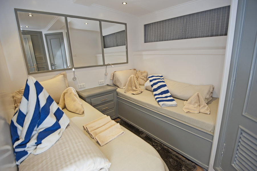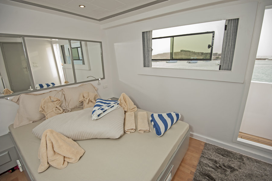 The MY Discovery II can comfortably accommodate up to 22 guests in 11 double cabins. Six of the cabins and the Honeymoon Suite are located on the lower deck. The remaining 2 cabins and 2 Honeymoon Suites are located on the top deck. All cabins are fully airconditioned and come complete with an en-suite bathroom. Additionally, the Honeymoon Suites are all fitted with a minibar, entertainment system, and large beds.