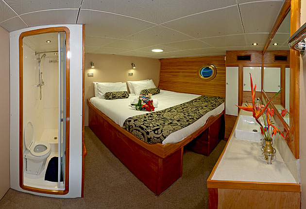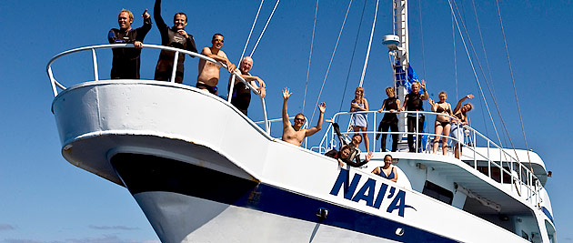 NAI'A has accommodation for 16 passengers in 8 air-conditioned staterooms with private ensuite heads. All the staterooms were entirely rebuilt in 2010. Three of the staterooms have king-size beds that can be configured as individual singles, two of the staterooms have both a king and a single bunk above at the foot; two staterooms have only a king bed, and two staterooms have twin bunk beds. All the staterooms are larger than those on most dive vessels, with plenty of storage for gear, and they are bright, airy, and comfortable.