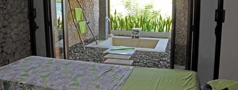Unwind in elegantly designed Bay View Suites featuring timber bungalows, al fresco open bathrooms, and private decks overlooking lush secret gardens.