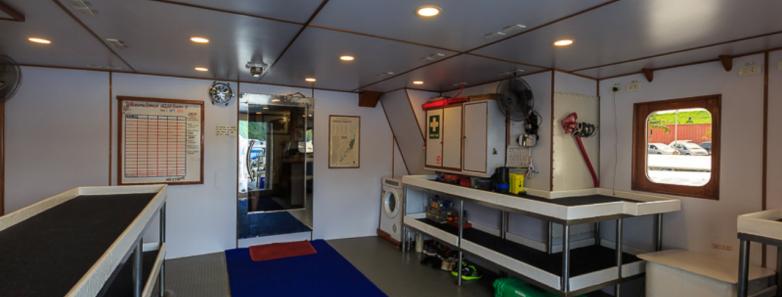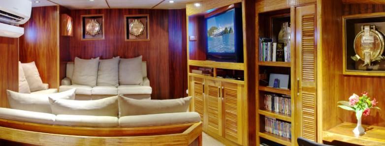 The 4 deluxe cabins contain a large living space with king size double bed with single bunk above. The ensuite bathroom holds a shower, basin and a Microphor toilet head providing silent and reliable operation. Large storage space and closets. Separately controlled Air Conditioning and 110/220 volt outlets.