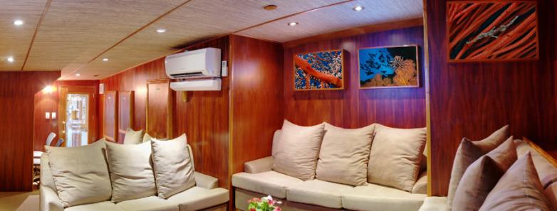 16 guests are accommodated in 2 Standard cabins (Cabins 2 & 5: one queen size bed, one single), 4 Deluxe cabins (Cabins 3, 4, 6 & 9: one king size bed, one single) and 2 upper deck Master Staterooms (one king size bed, one single).
