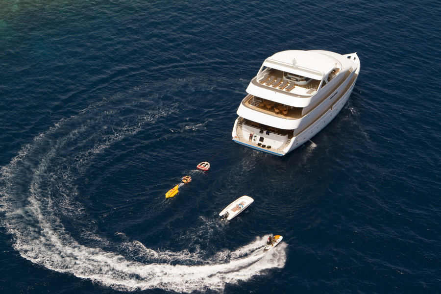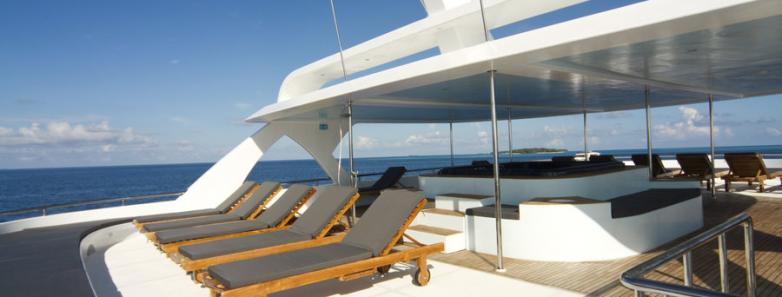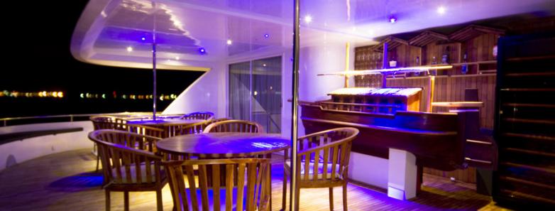 Made for the sapphire ocean it frequents, the Ocean Sapphire stands three decks tall, ready to cater to a diver's every need. This sleek yacht houses spacious cabins made for maximum comfort and other amenities that perfectly combine modern luxury with the polished interiors of natural teak and pine.