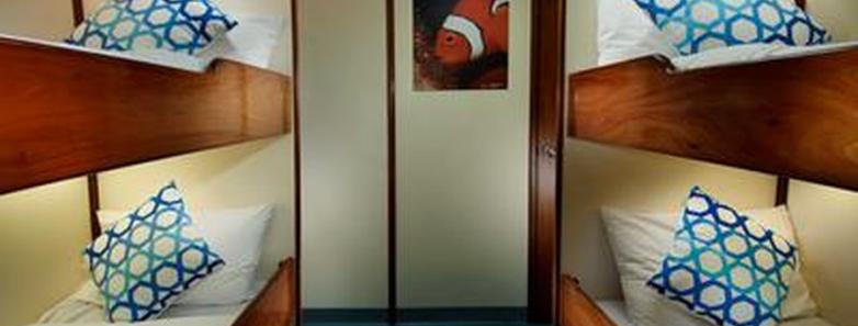 There are 12 cabins accommodating 20 divers. Guests may choose between the Premium Double Cabin, the Classic Twin/Double Cabin, The Classic Twin Cabin, the Standard Twin Cabin, and the Standard Single Cabin. All cabins are fully air-conditioned and come with an ensuite bathroom complete with bathrobes and extra towels.