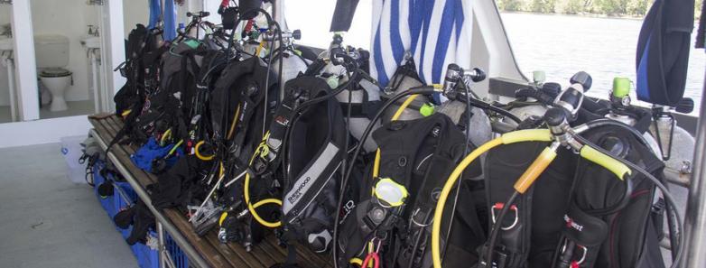Dive deck with toilets, freshwater showers & freshwater rinse bins for equipment