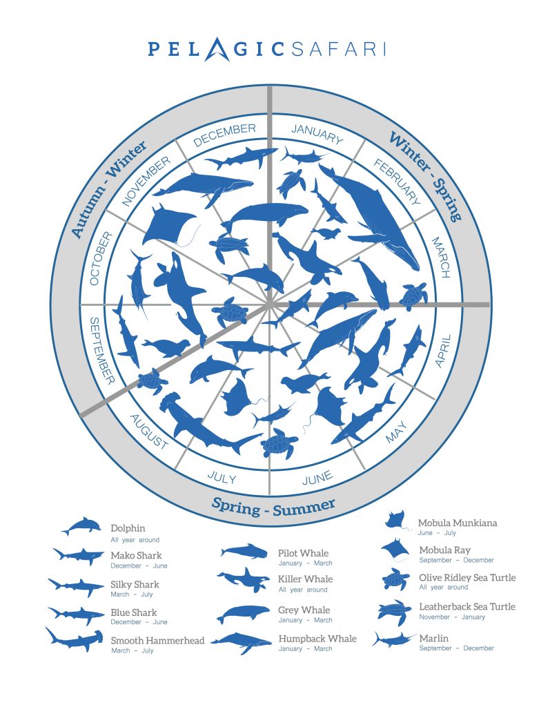 The safari experience is completed with dolphins, whales, turtles, huge schools of mobula rays, sharks, and everything else we may find along the way.