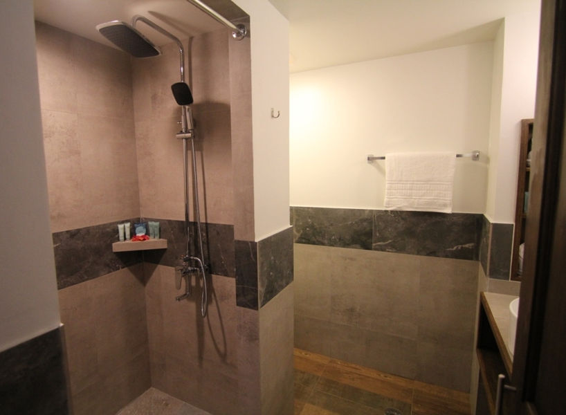 This room includes one king or two twin beds, an ensuite rain shower, and a kitchenette, ideal for guests seeking extended stays.