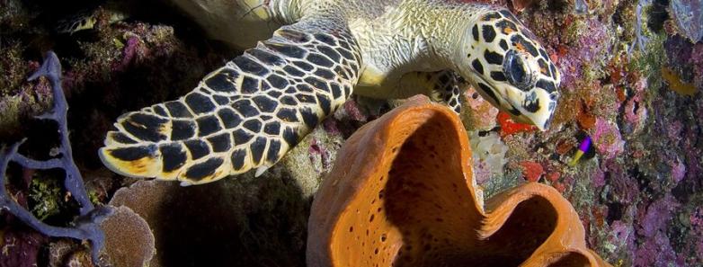 - Marine Life: Indonesia is one of the most diversediving destinations on the planet, making itone of our top 5 underwater photography destinations! Wakatobi, in particular, is home to many small to mid-size marine species, pelagic fish, turtles, and others. There are over 5000 known species of ancient sea sponges, a host of which can be found in Wakatobi, and if you're patient, you'll eventually find a Hawksbill turtle feasting on one of them. It's also where you'll find amazingly colorful coral reefs, as well as the tiny creatures among those corals, such as soft coral crabs, which look almost fluorescent. And if it's macro life you're looking for--there's frogfish,Halimeda ghost pipefish, lobsters, juvenile cuttlefish, and octopus can also be found. Plus Wakatobi is one of the best places in the world to find Pygmy seahorses. There are also moray eels, rainbow reef fish, schooling pelagics, sharks and rays aplenty, and so much more!