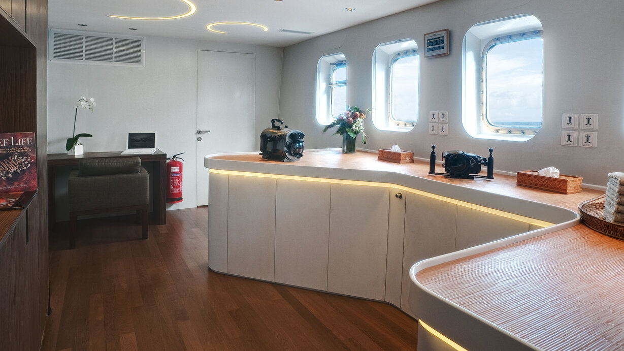 The Dive Experience Managers and crew handle all logistics of equipment and cameras, and provide full in-water support. Additional technical diving support can be arranged via the concierge, in advance of your trip.