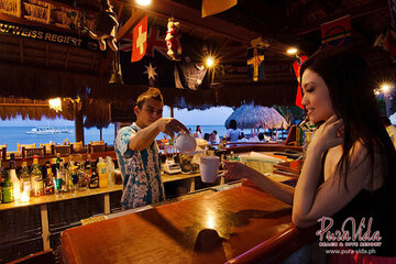The Beach Bar (LEFT) and the Restaurant of the Pura Vida Resort Dauin