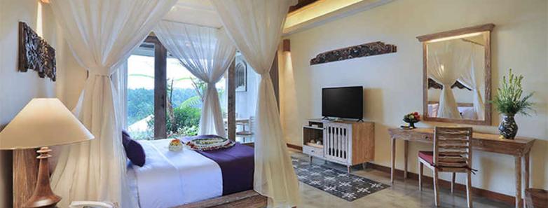 Elegant 74 sqm suite overlooking the Ayung River Valley, combining refined design with serene valley vistas for a tranquil Ubud retreat