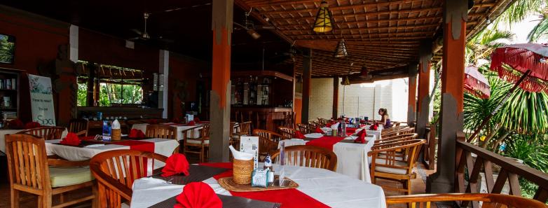 The seaside restaurant, managed by Chef Edi, serves a variety of Balinese, Indonesian and Western dishes with fresh ingredients only. Vegetables are delivered daily and locally grown. Therefore some fruits or vegetables are seasonal. We depend on the catch of the day of the local fishermen. Try their exotic cocktails, while sunbathing at one of the pools, relaxing at the restaurant or enjoying a nice/breezy tropical night with family or friends.