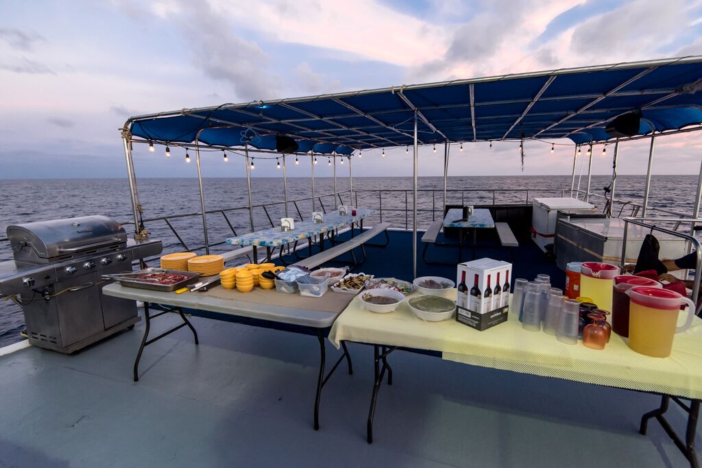 • Each day starts early with a continental breakfast with fresh fruit, cereals, bagels, yogurt, bread, and freshly brewed coffee. After the first dive guests enjoy a full, plated breakfast.