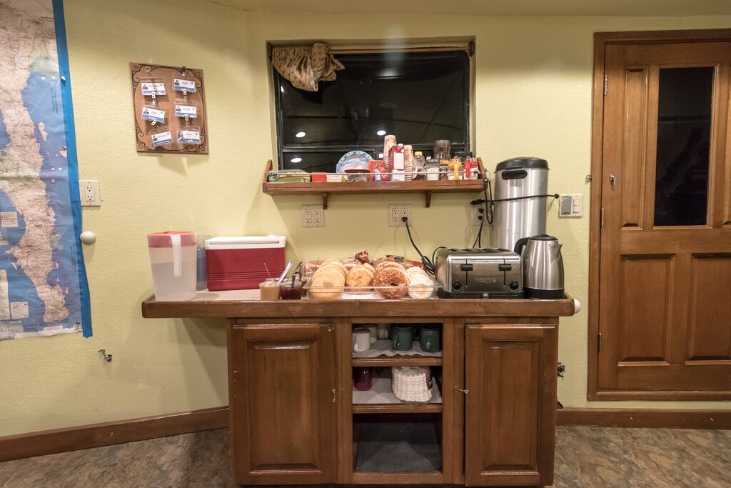 • For dinner, guests enjoy a three-course, plated meal with a salad, entre, and dessert. Hot and cold beverages are always available including canned soft drinks.