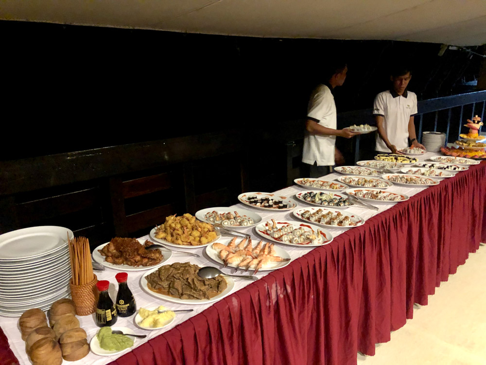 We were originally scheduled to only do 2 dives before making the long transit south to Misool, but instead asked the cruise director and captain if we could fit in one last afternoon muck dive, to which they obliged. After the last dive, the Amira pulled anchor and started the overnight trip south while we had a sunset party on the sun deck with drinks, snacks, and live music performed by the crew.