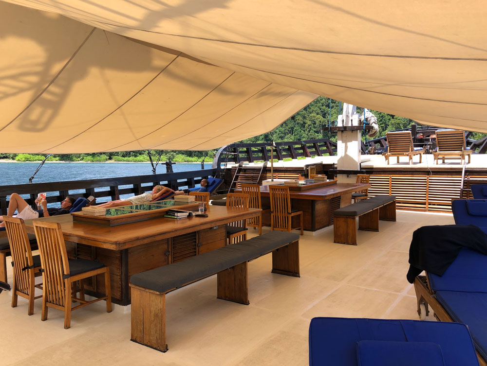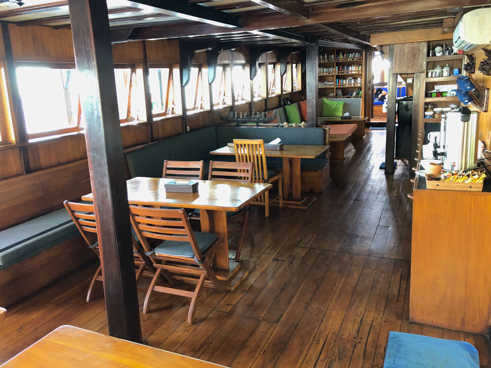 The first thing youll notice about the Amira as you arrive is that she is a big boat, dwarfing not just the tiny tender that you are arriving in, but also all other liveaboards and pleasure-craft anchored nearby. At 165ft in length and with a very wide 35ft beam, even before boarding you can tell that there will be plenty of room for creature comforts. After climbing aboard, we were offered a refreshing welcome drink and given an overview from the cruise director of the days to come.
