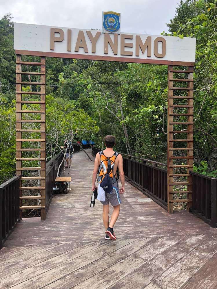 In the afternoon we took a boat tour through the aqua waters around a maze of mushroom-shaped islands. We skimmed over healthy reefs, protected by sheer cliffs with jungle tumbling down from the peaks. Our boats passed local fisherman (the only people allowed to fish these waters whove also been organized to help monitor and protect the reefs) on small outrigger canoes hand-lining near tiny fishing camps clustered around white sand beaches in tiny, remote bays.