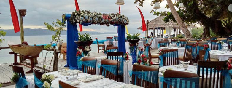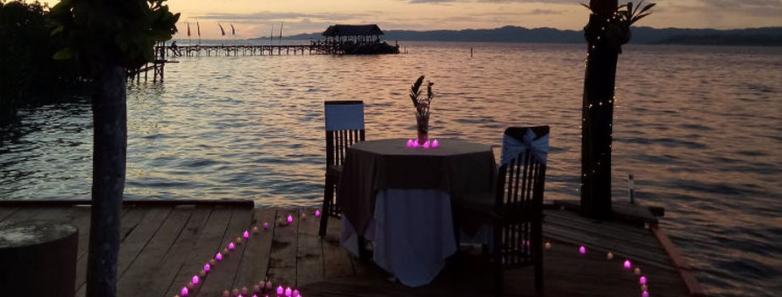 There are direct flights daily from Jakarta to Sorongs Domine Eduard Osok Airport in Sorong (SOQ). In Sorong, the travel coordinator from Raja Ampat Dive Lodge picks guests up from their Sorong hotel or from the airport and then escort them by car to Sorong Harbour, where they board the Lodge's speedboat. After an approximately 90-minute crossing, guests arrive in the iconic jetty in front of the resort in Raja Ampat