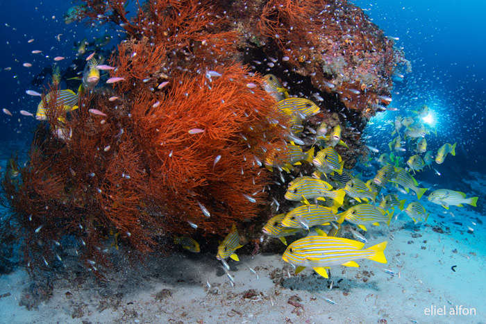 Although the schedule had us diving 2-3 times during the day with one night dive, we still found time for an hour long daily photoworkshop! As with most photoworkshops, we had a large range of photo and video shooters from first time shooters to seasoned videographers to normal divers! Having a diverse group and set of experiences makes it easier for everyone to learn from eachother. As with all workshops Ive led, I certainly picked up a thing or two! Topics during the workshop included lightroom, macro, wide angle, video, and even a special session on over-under photography. I was testing out the new Sony A7R V camera in an Ikelite housing with new Ikelite DS 230 strobes. There are a lot of great underwater housing options for the Sony A7R V - so be sure to check them out at Bluewater Photo! My wide angle lens of choice was the Canon 8-15mm fisheye with the Sigma MC-11 adapter, and my macro lens of choice was the Sony 90mm macro. Other popular cameras on this trip included the Sony A1, GoPro Hero 11, Canon R5, Nikon Z6, Sony A7R IV, Nikon D850, and Sony A6300.