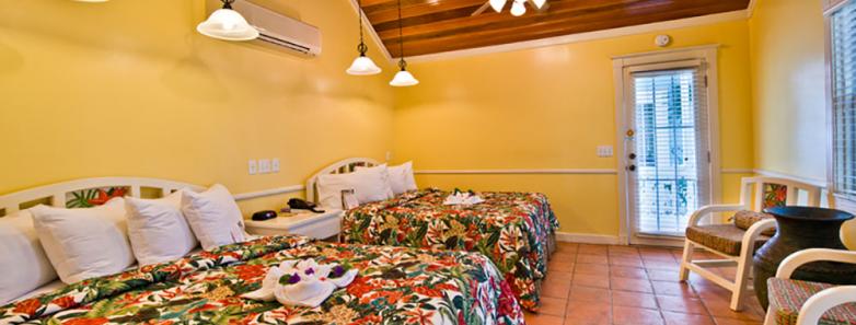 Across from Ramon’s Village, Steve & Becky’s offers ten British Colonial-style cottages in a lush garden with a central pool. Each features Saltillo tile floors, Belizean hardwood ceilings, and two queen beds. Guests enjoy full access to Ramon’s Village amenities, including restaurants, bars, a dive shop, spa, and more. 24-hour security is provided.