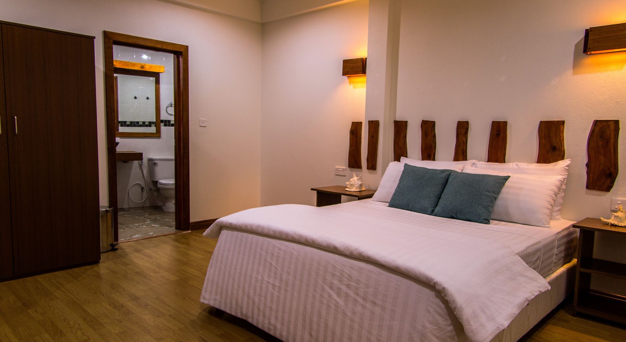 [Read More: Maldives Dive Travel Guide]Rasdhoo Dive Lodge currently offers 8 newly completed traditionally crafted rooms over two floors furnished in a modern tropical style keeping with the relaxed feel of the island. Measuring 27 to 30 sqm, the guest rooms comprise of a large bedroom with queen-sized or twin bedding, bedside tables, large wardrobe, dressing table with large mirror, and an indoor bathroom with stylish marble/onyx basins. A private enclosed outdoor white sand courtyard with lush garden foliage, outdoor shower, and hammocks create a tranquil relaxation area for guests.