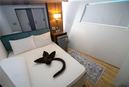 • Two single beds, porthole, wardrobe, bathrobes, hairdryer, fresh towels, AC units and private ensuite bath.