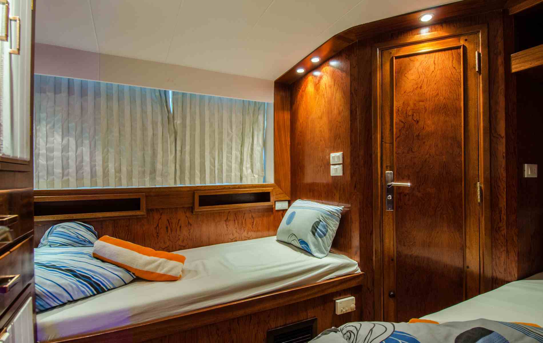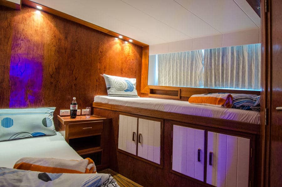 The Blue Planet 1 liveaboard offers guests 8 twin bed cabins all with en suite bathrooms and air conditioners.