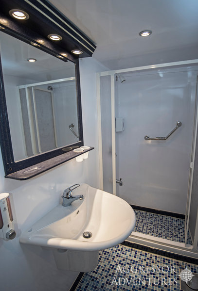 The Red Sea RE Aggressor can comfortably accommodate up to 24 guests in its 12 spacious staterooms. The Master Staterooms are located on the main deck and are configured with either two single beds or one queen bed. It also provides a beautiful view of the horizon through its picture windows. The Deluxe Staterooms are located on the lower deck and are configured with two single beds and a porthole view. All rooms are fully air-conditioned and come complete with an ensuite bathroom. Each stateroom is also equipped with a TV and media player.