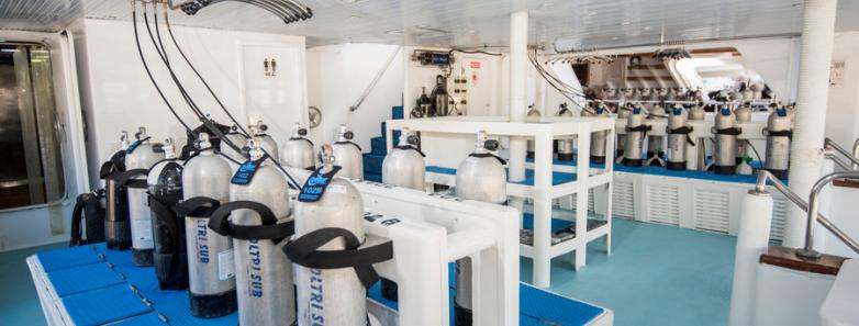- All dives from the mothership and 2 skiffs that carry 11 divers each for quick access.