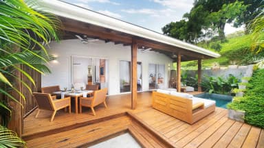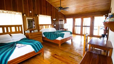 Just a one-hour ferry ride or 15-minute flight from Roatan, the small island of Utila has a lot to offer. You'll find all the resorts, restaurants, and dive shops on the main strip of the south shore. Famous for its high concentration of dive schools along the walkable strip, you will be near a dive center wherever you stay in Utila. Expect smaller budget hotels designed with divers in mind; enjoy the convenience of stepping directly from the boat to your room or the dive bar.