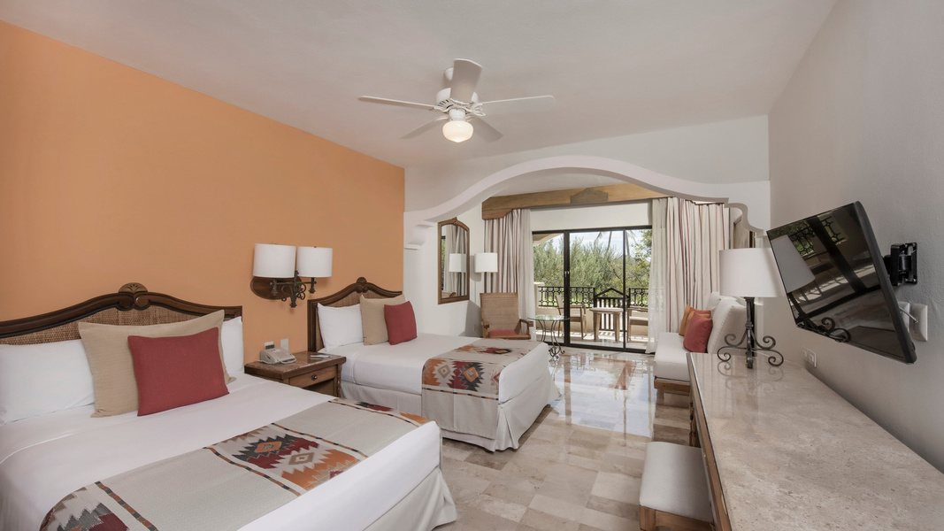 - The Double Rooms at the Iberostar PTA De Mita are perfect for nature lovers as it offers guests an incredible view of the jungle surrounding the hotel.Guests can also choose the Double Room Near Pool which is a preferential room for its location close to both the white sandy beaches and the pools. At 377 sq. ft., the room can be fitted with a king-size bed or two double beds, and comes with a private balcony.Other room amenities include free Wi-Fi, room service, and an en-suite bathroom. Guests can also make use of the room's safe, flat-screen tv, air conditioning, ceiling fan, minibar, coffee maker, hairdryer, and iron and ironing board.