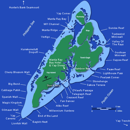 Yap is best-known for its resident manta ray presence, clear blue water diving and a strong reef shark population. With almost 100 miles of barrier reef, several big channels and lagoon sites, there is one of everything here to explore miles of outer reef wall diving, deep and shallow channels to drift as well as inner lagoon macro and night diving. Highlights of Yap Diving are the mantas, daily year-round reef shark diving with three kinds of interactions, nightly mating mandarin fish as well as rich coral walls and caverns.