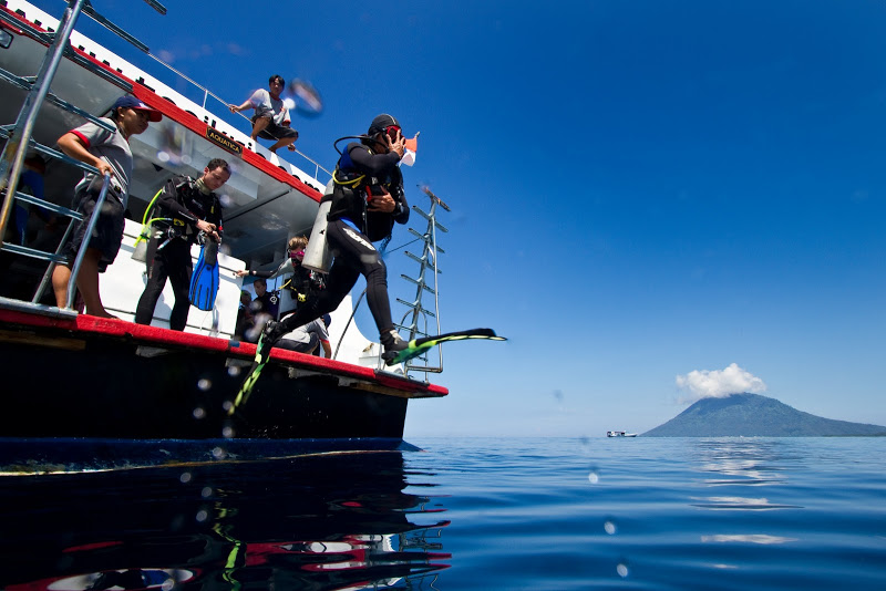 - Three drift dives on the spectacular walls and slopes around Bunaken National Park near Bunaken Island and the majestic Manado Tua (extinct) volcano. You will see huge sponges, turtles, white tip reef sharks, so many reef fish it is hard to believe and a huge array of flora and fauna including macro critters.