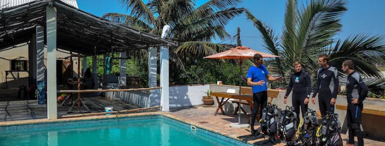Tofo Scuba Dive Center stands out as a premier destination for diving enthusiasts in Mozambique's vibrant waters. As a PADI 5 Star Gold Palm resort located in Tofo, the center offers a comprehensive range of PADI courses from introductory Discover Scuba Diving (DSD) to advanced Divemaster training. Staffed by experienced PADI instructors and DOT-certified skippers, the center ensures safe and expertly guided dives.