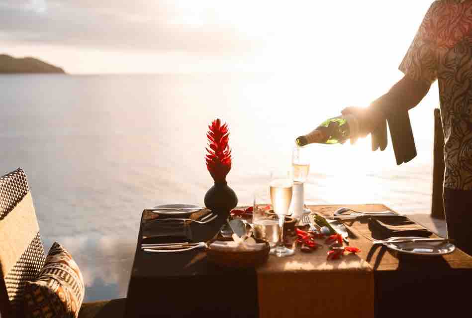 You'll enjoy many options of dining at Tokoriki. Under the shade of the palm trees by day or beneath a blanket of stars on your own dining deck in the evening. The Talented Chefs create daily changing lunch & dinner a la carte menus featuring local and imported produce, South Pacific and Asian influences with a modern international twist! Special dietary requirements are also catered for. The Meal plan option is available at the resort. To ensure your Fijian cultural experience is complete, on Wednesdays Tokoriki features a traditional Taste of Fiji evening.