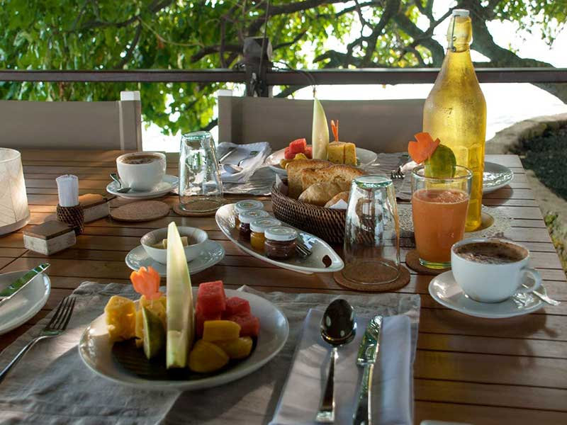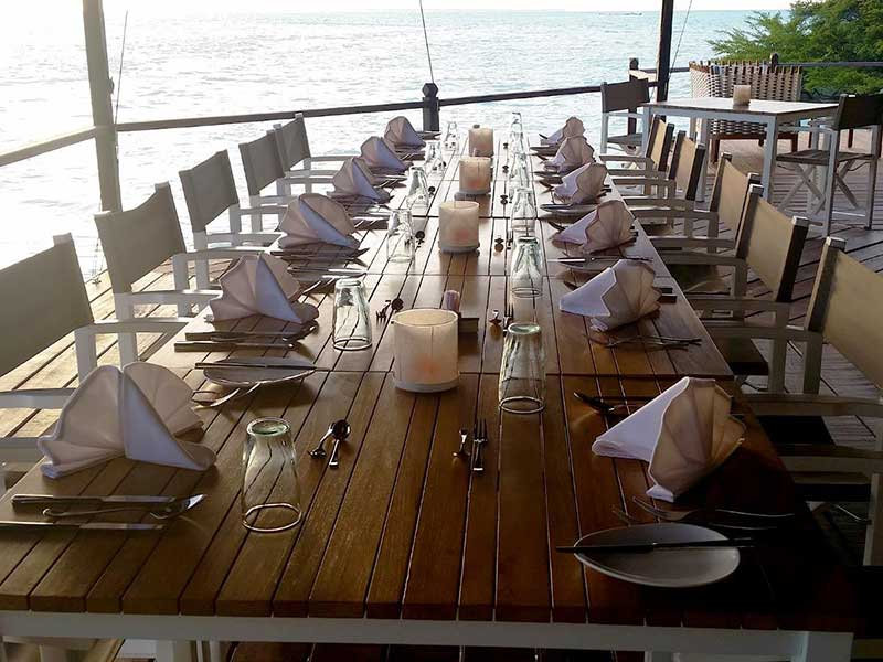 The ambiance at the restaurant is inviting and vibrant, with the option to dine at various locations across the island, including the privacy of your bungalow suite terrace. The atmosphere is enhanced by the stunning natural surroundings, offering a serene and romantic dining experience. The focus on health-conscious and local Indonesian specialties ensures a memorable culinary journey in a beautiful tropical setting.