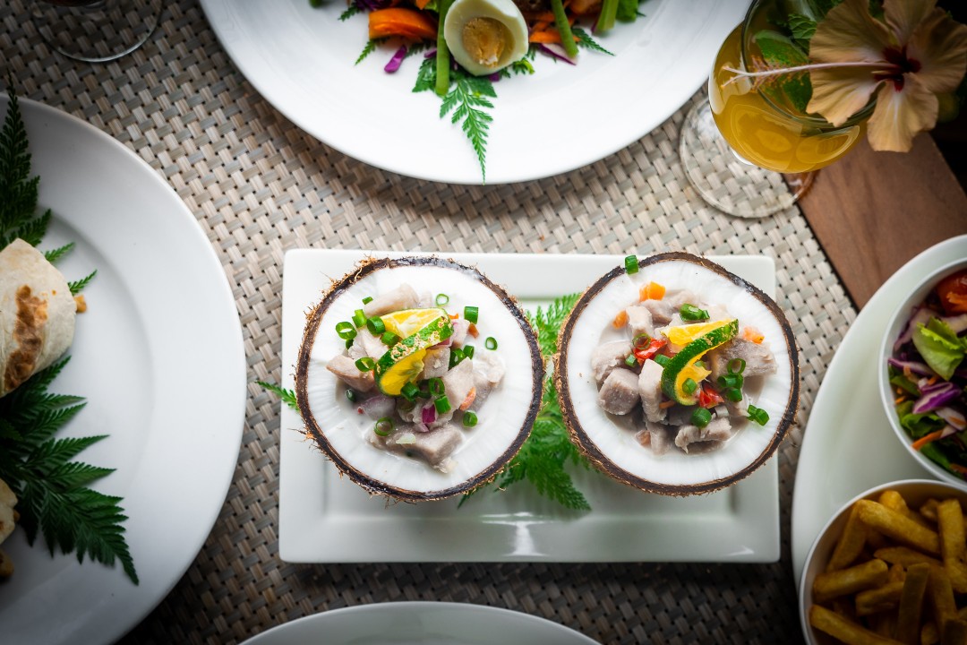 Dining at Waidroka Bay Resort is relaxed, flavorful, and distinctly Fijian. The restaurant serves breakfast, lunch, and dinner daily, with menus that showcase fresh local produce and cater to vegetarian, vegan, and gluten-free preferences.