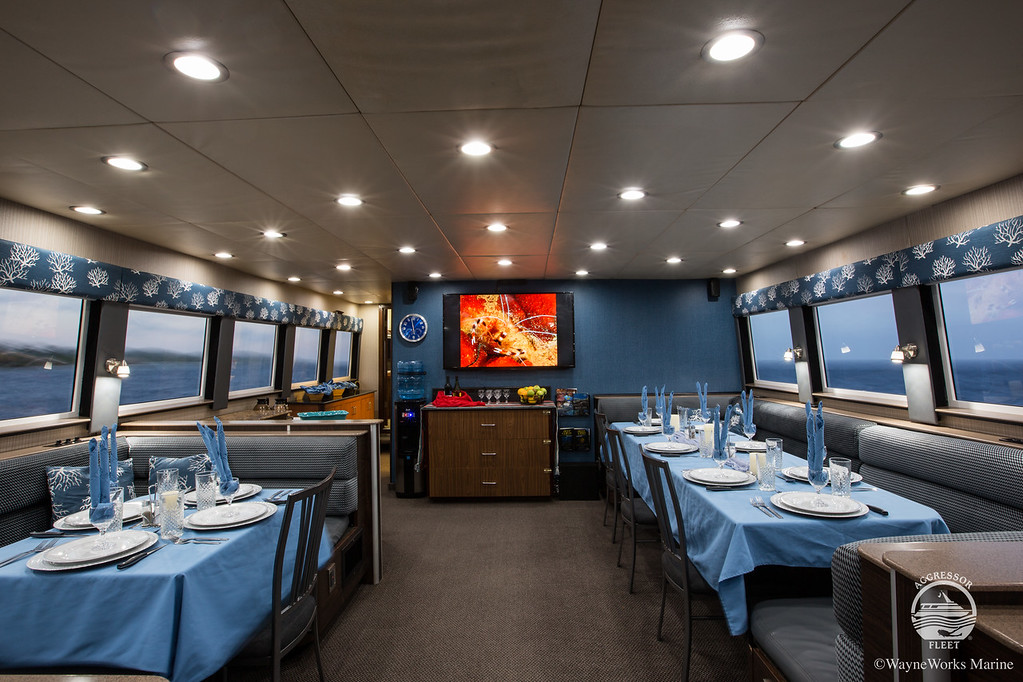 Accommodations include 9 deluxe staterooms, 7 with a double and single berth, one with 2 twin beds and 1 with a queen bed. All staterooms have climate controls, private bathrooms, and showers. The Roatan Aggressor sleeps 18 guests in privacy and comfort.