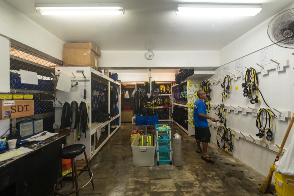 A typical day of diving with Sam's Tours beings with an 8:30 a.m. (unless otherwise stated) complementary pickup from various hotels in Koror to our dive center in Malakal.