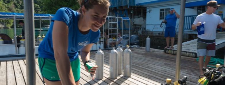 Sam's Tours' facilities cater to all levels of tec diving, including diving with twin sets, various sizes of decompression cylinders, and hang bars for your comfort during decompression stops, while oxygen, helium, booster pumps, and Sofnolime are available upon request.