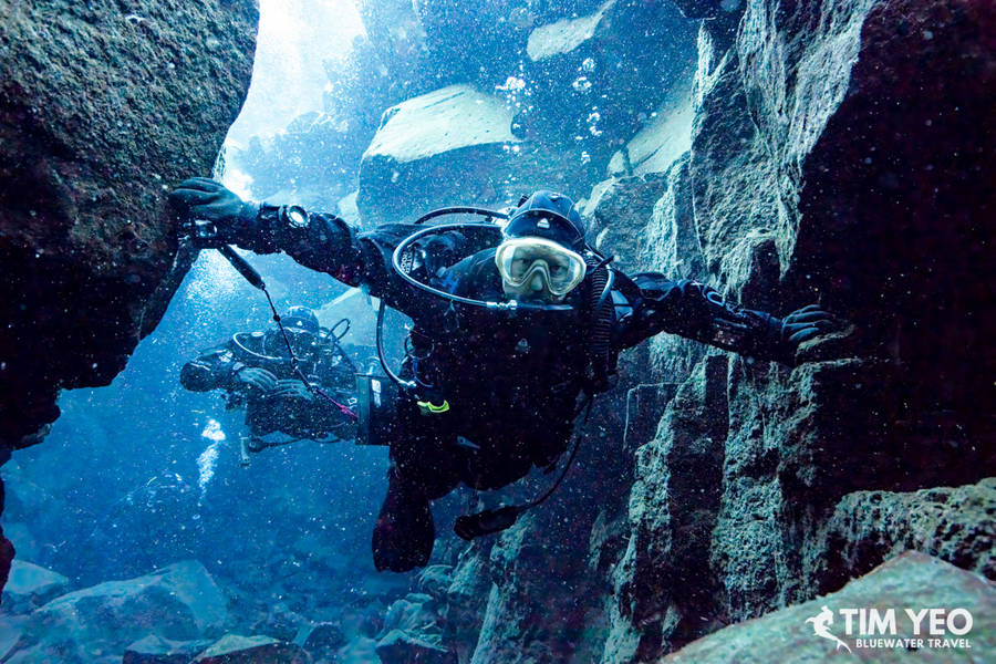 • Water temperature: Silfra 35.5-39oF (2-4oC) year-round, ocean diving averages between 39 and 45oF (4-7oC).