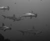Whitetip reef sharks sleep (top) and a school of hammerhead sharks (bottom). Photographed during Bluewater's 2023 Socorro trip.