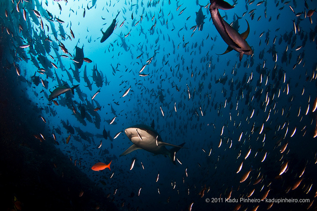 - Roca Partida: Like Wolf and Darwin Islands in the Galapagos, it ranks as one of the best dive sites in the world for big animal encounters. This is where the iconic photos of stacked whitetip reef sharks can be found. All kinds of marine life are attracted to the isolated pinnacle, like Galapagos sharks, massive schools of jacks and bonito getting hunted by dolphins and tuna, humpback whales and whale sharks in season, and, of course, many giant rays.