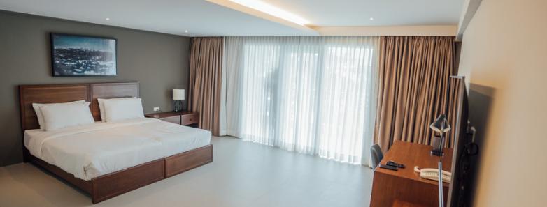 The Solitude Acacia Resort's 25 spacious rooms are all fully airconditioned, come with free Wi-Fi, in-room coffee/tea making facilities, a refrigerator/mini bar, and an LCD TV. The accommodates are all designed with a modern aesthetic and come complete with an ensuite bathroom.
