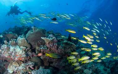 The dive sites in the Great Barrier Reef and the Coral Sea feature healthy reefs, soft corals, mantas, schooling gray reef sharks, white tip reef sharks, hawksbill turtles, and much more.