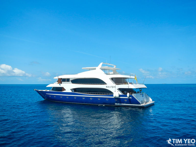 We left Cinnamon Citadel in Kandy at 7:30 AM and made the long drive back to the airport, where we boarded a Sri Lanka Airlines flight to Male. Our Italian divemasters, Herbert and Federica, met us at the airport, then guided us to a nearby jetty. There awaited our diving dhonia traditional Maldivian boat equipped with air/nitrox compressors, tanks, weights, and more. The dhoni transferred us and our luggage to our larger liveaboard boat and home for the next 7 days: The luxurious M/Y Duke of York.