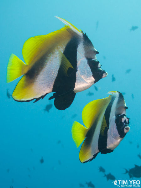Again we experienced a veritable sea of treasures. We saw Napoleon wrasse, an eagle ray, a school of yellow blue-stripe snappers, scorpionfish, some lionfish, white tip sharks, a black tip shark, a hawksbill turtle, dogtooth tuna, powder-blue surgeonfish, sailfin surgeonfish, Blue-fin jack, and masked bannerfish.