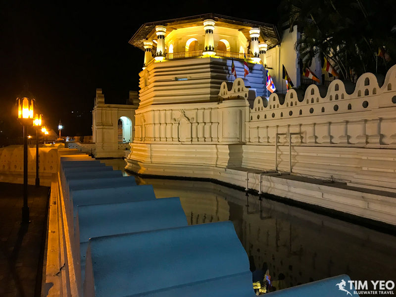 The last stop of the day was another UNESCO World Heritage Site, the Temple of the Sacred Tooth Relic, known locally as Sri Dalada Maligawathe most sacred temple in the whole of Sri Lanka. This important shrine boasted intricate carvings and beautiful Sri Lankan art. During the evening, puja throngs of pilgrims visit the temple to line up to glimpse the golden caskets said to hold the sacred Buddhas tooth relic and to make offerings of flowers. At the appointed time, some travelers from our group managed to glimpse the golden caskets through the open door as both tourists and locals clamored into one large moball eyes straining to see the monks complete their offerings.