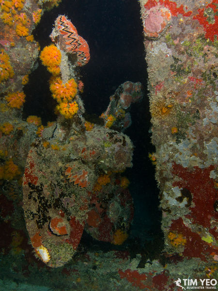 Another night dive. Machafushi Wreck presented as a nice, intact wreck. We penetrated the wheelhouse, and saw large grouper and a moray eel out hunting.